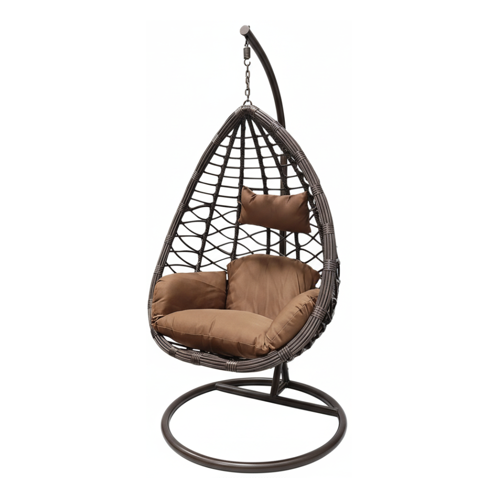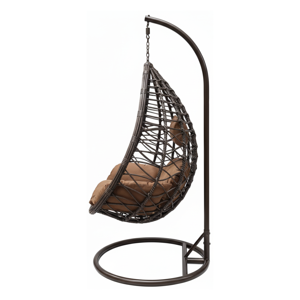 • Rich, Earthy Tones: Features dark brown woven rattan and matching coffee-coloured cushions.